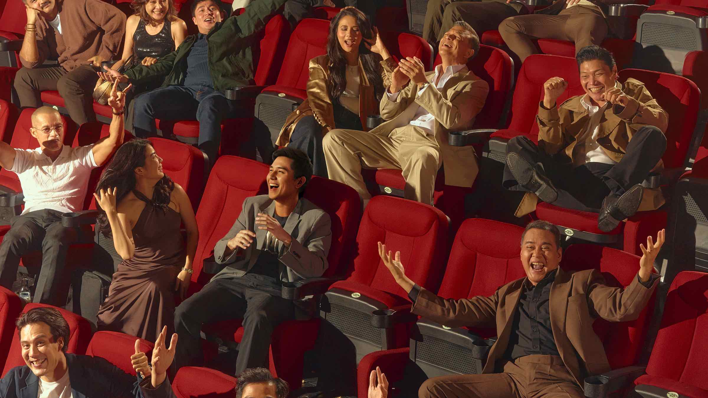 Shot by renowned photographer Artu Nepomuceno at Gateway Cineplex 18 in Quezon City, the photo features Heneral Luna star John Arcilla, Goyo lead Paulo Avelino, and Jericho Rosales, who plays the titular role in Quezon. The image captures the trio — along with cast members from across the trilogy — as if they were moviegoers enjoying a film on the big screen, a symbolic nod to the power of storytelling and cinema.