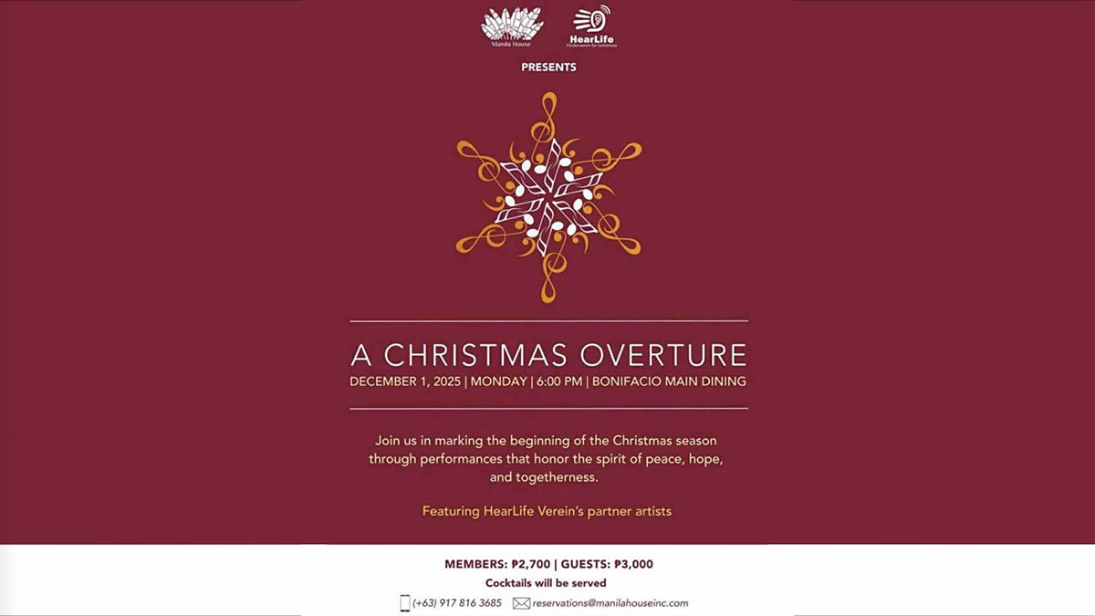 Manila House Private Members Club will open the holiday season with purpose and celebration on December 1 as it hosts A Christmas Overture, a fundraising concert supporting HearLife-Verein. The event brings together a lineup of established and emerging musicians, all performing in support of hearing and speech rehabilitation programs for children with cochlear implants, as well as deaf and hard-of-hearing individuals.